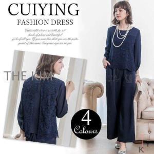 パーティードレス 結婚式 パンツドレス セットアップ パンツスーツ フォーマルドレス 二次会 レース ツーピース 大きいサイズ