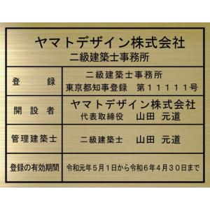 二級建築士事務所看板【真鍮ヘアーライン仕上げ1mm厚 平板】400mmx350mm おしゃれな二級建築士事務所登録票