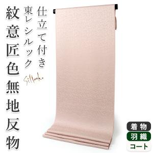 色無地 反物 渋ピンクベージュ色 東レシルック フルオーダー お仕立て付き 紋意匠 四季の花 地紋 女性 洗える 着物 袷 単衣 和服 羽織