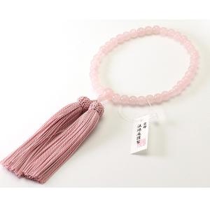 女性用高級京念珠・数珠 ローズクォーツ 紅水晶 KL013