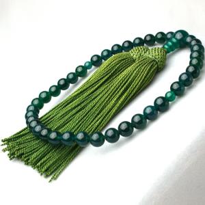 女性用高級京念珠・数珠 グリーンメノウ 38珠 正絹頭付房 KL020