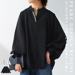パール付きトップス レディース トップス 長袖 送料無料・メール便不可