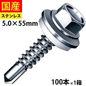 ドリルビス ビス ネジ テックスビス 六角 ロッカク ヘックス ステンキャップ ワッシャー付5 × 55 1箱 100本