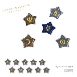 刺繍入り☆コズミックワッペン 惑星 ・ 刺繍 キラキラ 星 太陽系惑星記号 水星 金星 火星 木星 土星 天王星 海王星 冥王星 月 太陽 おしゃれ アイロン接着