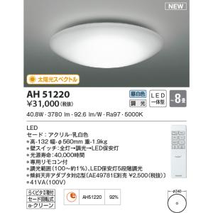 AH51220 シーリングライト 〜8畳 太陽光スペクトル LED一体型 昼白色