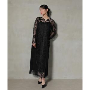 ドレス 「低身長用サイズあり」 シアー素材 ボリューム袖 刺繍レース ワンピース パーティー ドレス 結婚式 お呼ばれ マタニティ 妊婦 オケージョ