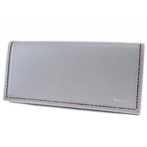 財布 メンズ 長財布 ポールスミス ブランド ストライプ インセットディテール かぶせ フラップ 専用箱付 ライト グレー 男性 紳士 本革 ギフト BPS273