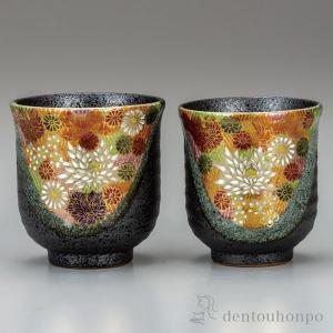 九谷焼 組湯呑 金花詰 ペア ( あすつく 退職祝い 定年 夫婦湯呑み 夫婦湯のみ セット 湯飲み おすすめ セット 九谷焼 結婚 出産 内祝い 引き出物 金婚式 )