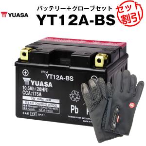 バイク用バッテリー YT12A-BS 密閉型 台湾ユアサ YUASA 正規代理店・保証書付き バイクバッテリー+バイクグローブ2点セット(液入済)