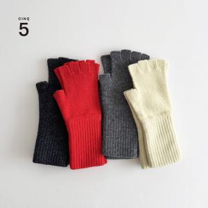 CINQ サンク 指なし手袋 ラムウール100% スコットランドチャコール レッド ミディアムグレー レモネード レディース フィンガーレス グローブ
