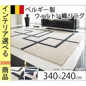 ラグマット ウィルトン織り 240×340cm ポリプロピレン 四角柄 四角形 ベルギー製 アイボリー・ブラック色 YN51000175