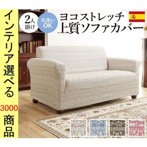 ソファカバー 125×85×90cm ポリエステル 2人掛け用 アームレスト有 ジャガード織 花柄 スペイン製 ベージュ・ブルー・ブラウン・レッド色 YN61001435