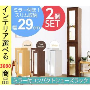 シューズボックス 29×35×90cm 5段タイプ 鏡付き 2個 ダークブラウン・ナチュラル・ホワイト色 YHETS9030SET