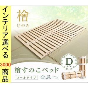 睡眠用すのこ 140×200×2.5cm 木製 ひのき ロール収納可能 ダブル ナチュラル色 YHHNKRD