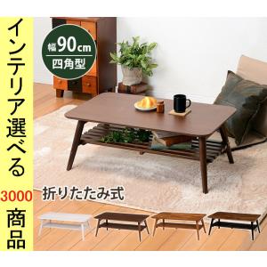 ローテーブル 90×50×35cm 棚付き 脚折れ式 四角形 アンティークブラウン・ライトブラウン・ブラウン・ホワイトウォッシュ色 YC8500048838