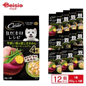 シーザー自然素材レシピ 平飼い鶏の蒸しささみ&さつまいも・いんげん 60g×4袋 ×12 ペット