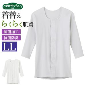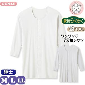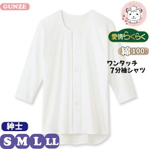 グンゼ 介護肌着 前開き 綿混 メンズ 7分袖 ワンタッチ 高齢者 シニア リハビリ 男性 紳士 着替えらくらく 愛情らくらく