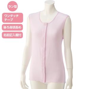 半袖大寸ホックシャツ 愛情介護シリーズ 肌着 ワンタッチテープ ボタン無し 介護 女性用インナー ランニング 名前記入欄付 抗菌 防臭
