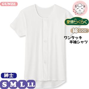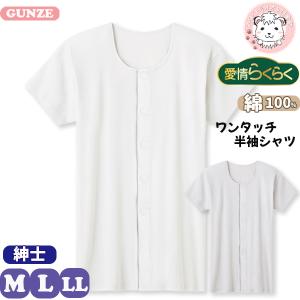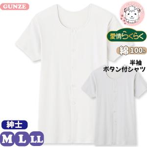 グンゼ 愛情らくらく 半袖 シャツ 着がえらくらく 大きめボタン 綿100% 前開き S/M/L/LL | 乾燥機対応 無地 メンズ 綿 下着 肌着 インナー HWC319 GUNZE