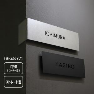 表札 アイアン コーナーサイン L字 おしゃれ 戸建て ステンレス 切り文字 黒 二世帯 lcs-20