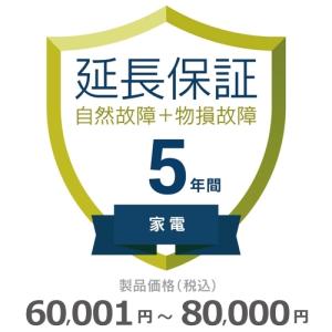 家電物損故障付き保証【5年に延長】60,001円〜80,000円 チケット