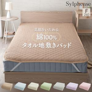 敷きパッド ファミリーサイズ 幅240cm 綿100% タオル オールシーズン 洗える 清潔 ベッドパッド 4か所 ゴム コットン 天然素材 敷パッド
