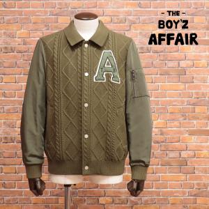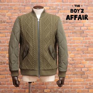 【期間限定ポイント10倍】秋冬 THE BOYZ AFFAIR MA-1ハイブリッド ブルゾン 撥水キルティング ツイル ケーブル編み切替 アウター メンズ