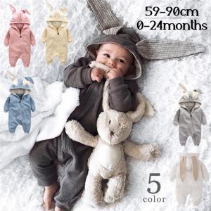 ロンパース カバーオール ベビー 新生児 乳児 女の子 男の子 つなぎ 長袖 ロングパンツ フード 耳付き ウサギ ジップアップ ファスナー 長ズボン
