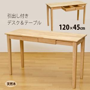 デスク 引き出し付き 平机 120cm幅 奥行45cm 天然木製 A4サイズ対応 おしゃれ テーブル スッキリサイズ 薄型 ナチュラルテイスト 北欧風 シャビ―