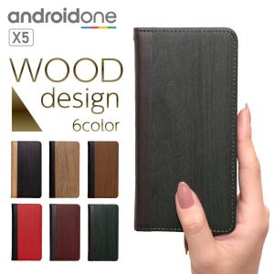 Android One X5 ケース スマホケース 手帳型 携帯 カバー 耐衝撃 アンドロイド ワン LG エルジー スマホカバー シンプル 木目調 レザー 革 スタンド 手帳