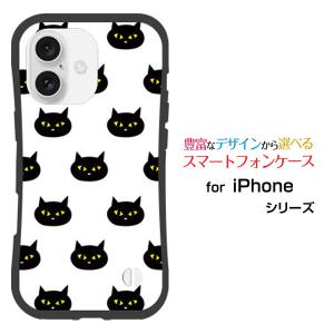 スマホケース iPhone 16 Plus 耐衝撃 ハイブリッドケース ストラップホール付 ブラックキャット ねこ 猫 黒 ドット ポップ
