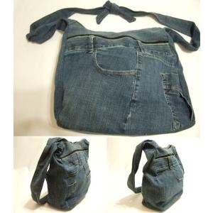 横浜最新 魅惑のデニムバルーン 結んで使うショルダーバッグ♪リメイクオリジナルバッグ 横巾35cm 縦31cm マチ11cm底板付き 送料無料syo77