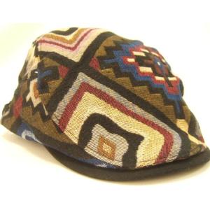 横浜最新 鮮やか幾何学模様♪魅惑のハンチング ブラウン系 メンズレディース 送料無料帽子34