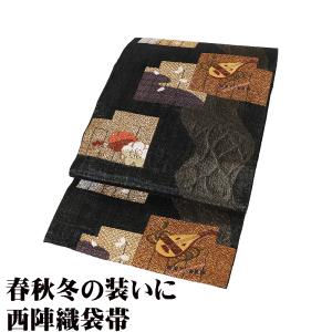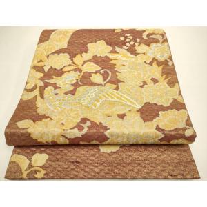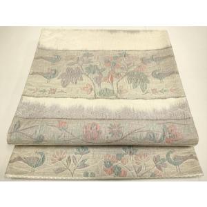 平和屋着物▽太鼓柄袋帯 スリーシーズン 春夏秋 櫛織 花蝶文 金銀糸 正絹 逸品 DABD2076du