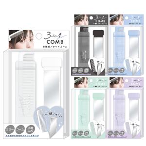 3in1 多機能スライドコーム くし 櫛 コンパクト ミラー 鏡 小物入れ 携帯 化粧雑貨 ヘアケア ホワイト ブラック ブルー ミント パープル 中学生 高校生