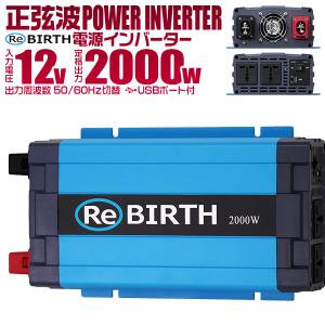 正弦波インバーター バッテリー ポータブル電源 防災 非常用電源 車中泊 アウトドア 12v 定格2000W DC12V / AC100V 50Hz/60Hz切替可能 USBポート付