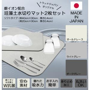 TRAD JAPAN 水切り マット 珪藻土 銀イオン 日本製 キッチン 食器 2枚セット(40×30cm+20×30cm)