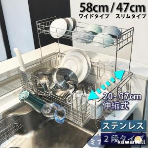 水切りラック ステンレス 水切りかご 2段 伸縮 大容量 おしゃれ スリム シンク上 ラック 水切り かご 省スペース 食器 洗い物 乾燥 キッチン 水筒 スタンド