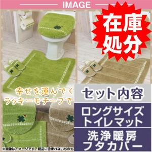 在庫処分 トイレ2点セット ロングマット(80×60cm) 洗浄暖房フタカバー /トレフル グリーン