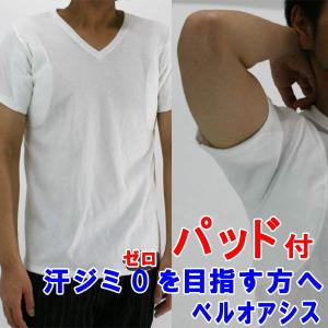脇汗パッド付きシャツ インナー メンズ 汗とり 日本製 重度ワキ汗対策 ホワイト 消臭 抗菌 ベルオアシス素材