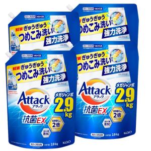 アタック抗菌EX 洗濯洗剤 液体 ぎゅうぎゅうつめこみ洗いでも強力洗浄 つめかえ用2900g×4個 大容量 超特大