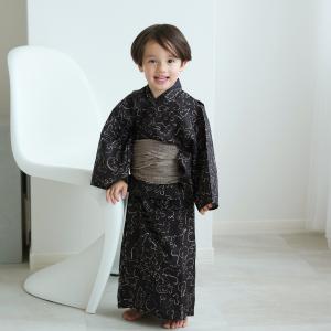 浴衣 子供 男の子 ニコアンティーク kids 高級変わり織 子供浴衣3点セット 墨黒に干支 こども浴衣セット(ゆかた・帯・下駄)レトロ 古典 キッズ