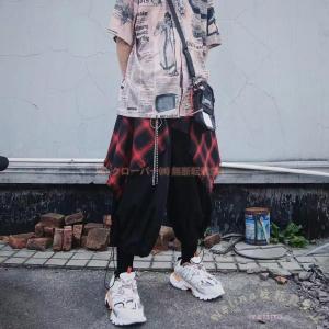 チェック柄シャツ 腰巻き風スカート メンズ レディース キュロットスカート Welina(株) 膝丈 フレア ハイウエスト おしゃれ レイヤード 裏地なし 薄手