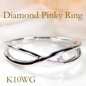 K10 YG PG WG ダイヤモンド ピンキー リング 送料無料 ゴールド 10金 10k 一粒 クロス ウェーブ X 華奢 極細 普段使い 指輪 人気 ゴールド 小指 EmR0131