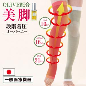 医療用 着圧 ストッキング オーバーニー オリーブオイル配合 レディース 美脚 冷えとり むくみ 血行促進 日本製 一般医療機器