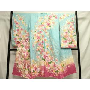 平和屋着物●小振袖 二尺袖 牡丹花文 暈し染め 金彩 正絹 逸品 DAAY2043op