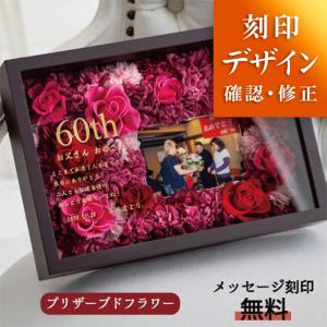 還暦祝い 花 名前入り プリザーブドフラワー 名入れ 写真立て 金婚式 両親 退職祝い 結婚祝い プレゼント プレミアム 文字が多く入る 高級 A4カーネーション