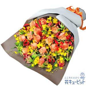 【退職祝い】花キューピット 花 ギフト お祝い プレゼントレッドとオレンジの豪華な花束