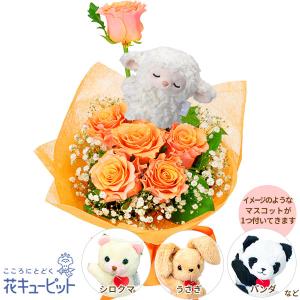 【退職祝い】花キューピット 花 ギフト お祝い プレゼントオレンジバラのマスコット付き花束