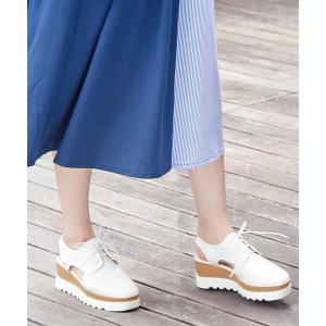 サンダル 2段厚底オックスフォードスムースレースアップシューズ/サンダル/靴/「I1583」神戸レタス レディース